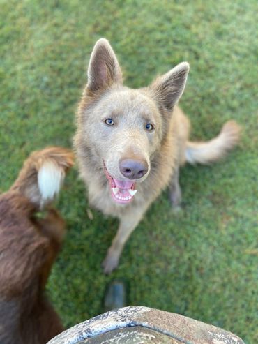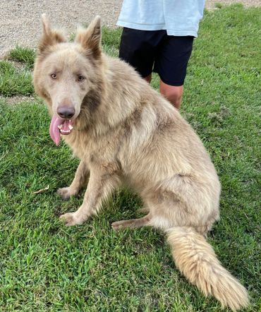 Apollo again is just like the others with a touch of dorkyness. lol He's a big love bug. He is AKC registered. He is an Isabella German shepherd that is also seal masking fawn and long coat.
