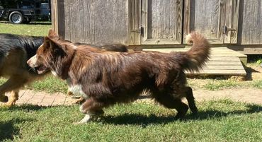 She just like the others, attention hog. lol All she wants is to be with you at all times. She is considered a liver seal panda German Shepherd. Panda is the result of a mutation of the KIT gene. She is AKC German Shepherd.