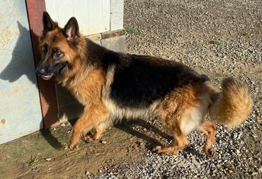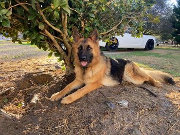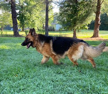 This girl is the sweetest and so calm. All she wants is attention. But she will let me know if anyone or anything is near our yard. Shes my guard dog for sure. AKC registered, DM carrier -not affected.